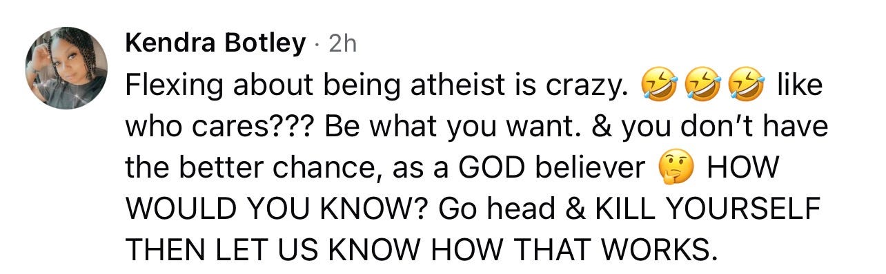 A godly woman told me to k*ll myself.