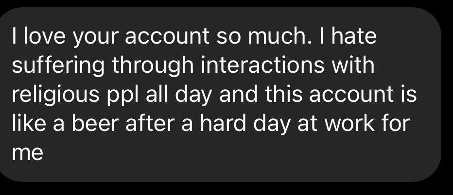 P.S. Advertise with Jesus Unfollower > My content reached 27 million viewers last month across IG, TikTok, and Facebook! I’m opening up sponsorship slots for my daily videos and the Holy Nonsense newsletter.
