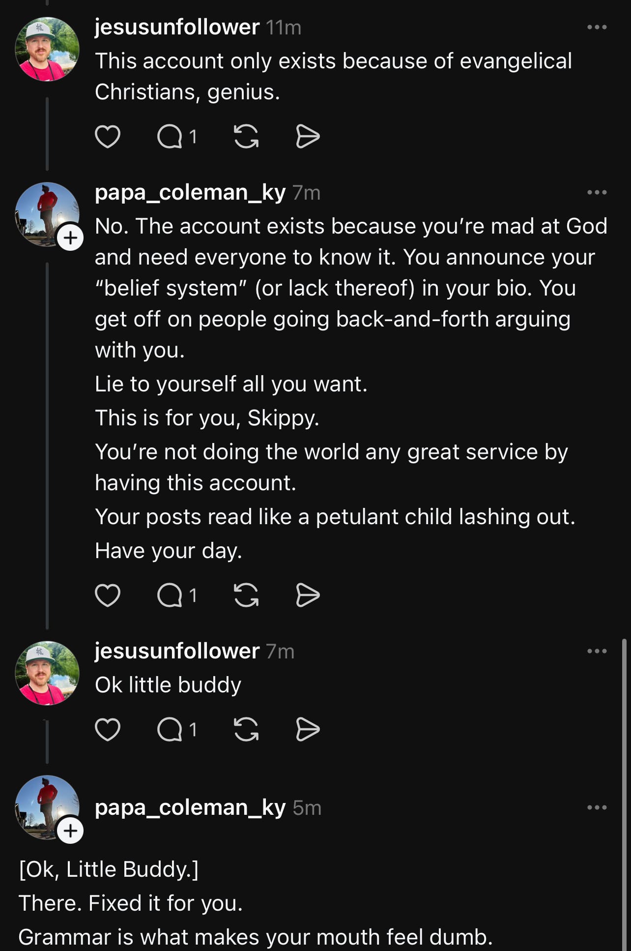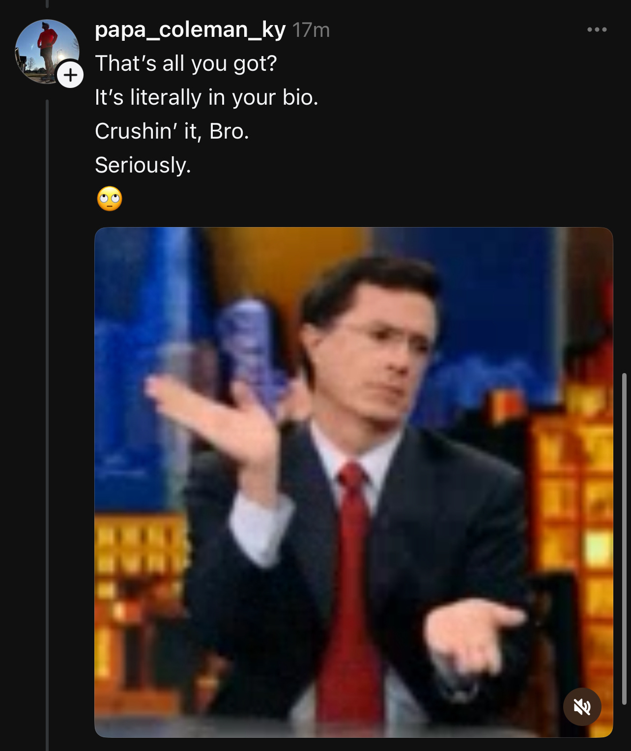 I posted this on Threads, and, of course, Papa Coleman had to use the tired old reply: