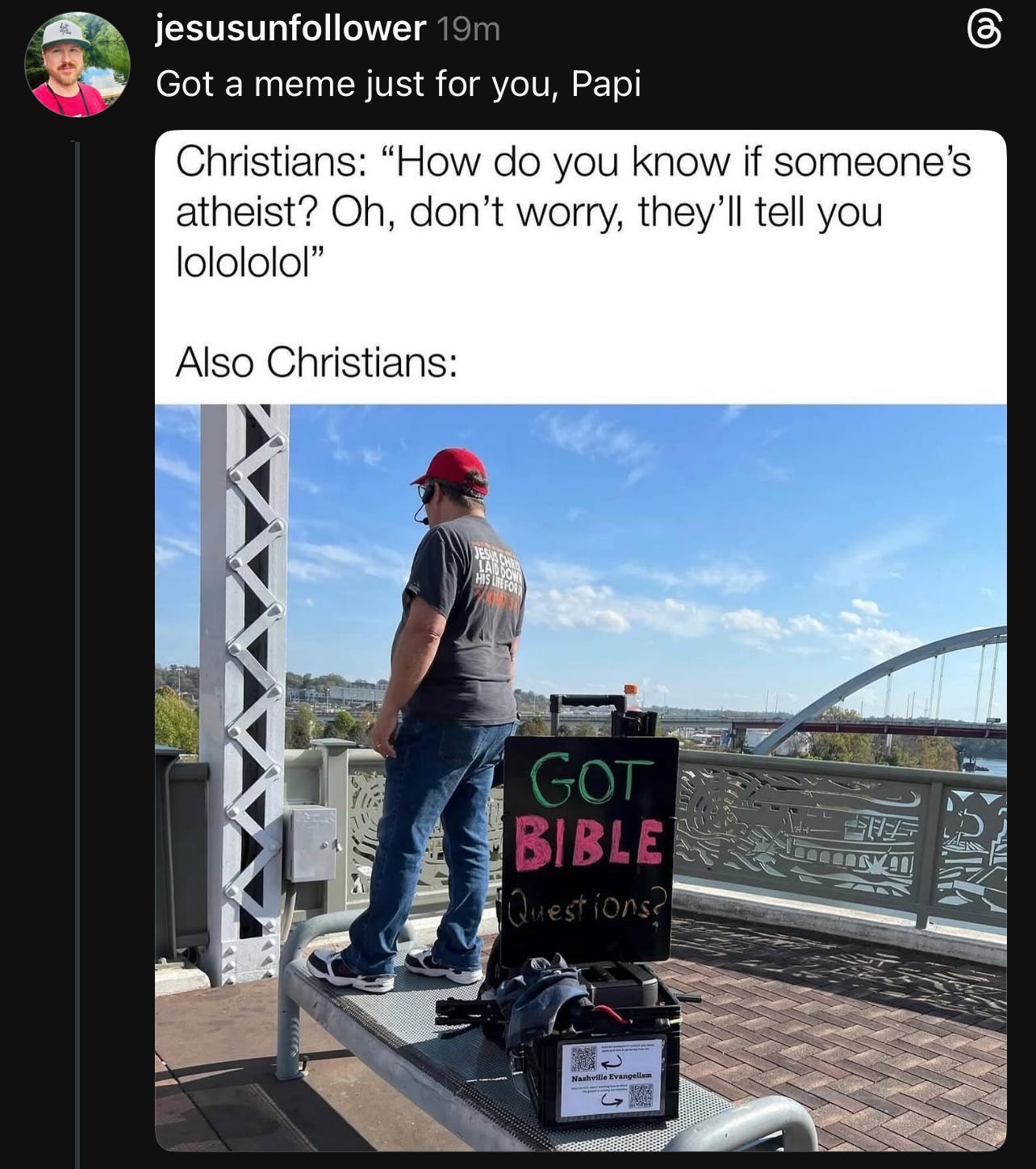 Jesus Unfollower wouldn’t exist if evangelical Christians didn’t constantly flood social media and the world with their desire to convert us all.