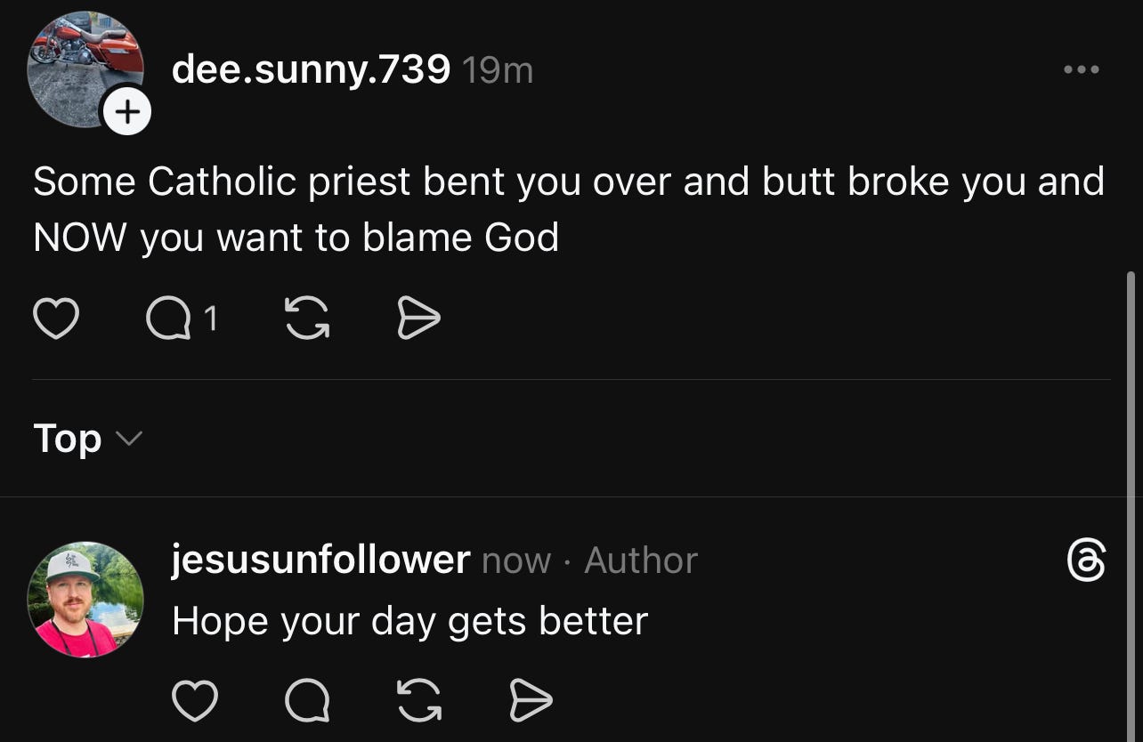 But, I get it. It’s an easy way for Christians to dismiss what I say and write it off as “he’s just angry,” or some nonsense like that.