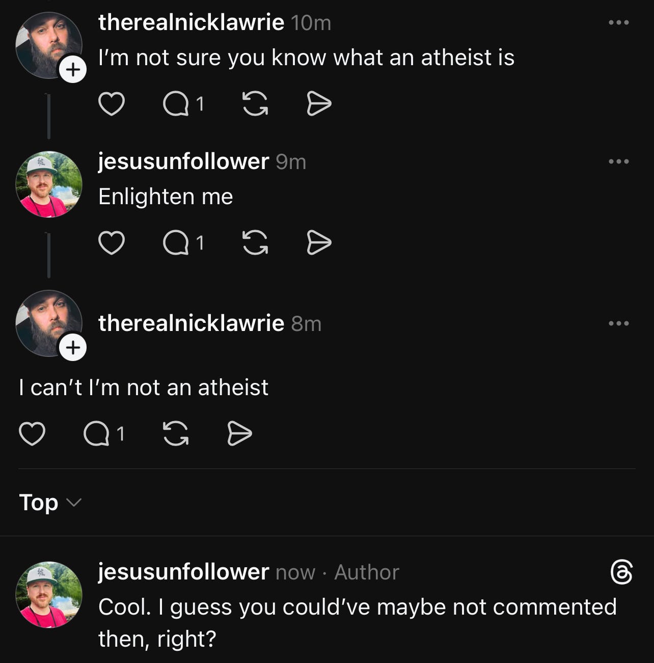 For some reason, Christians think that you can’t be an atheist if you talk about religion.