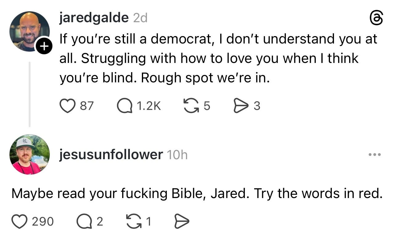 If you want to help me push back against Christian nationalism, consider upgrading to a paid subscription! It’s basically like buying me Taco Bell once per month…and I love Taco Bell.