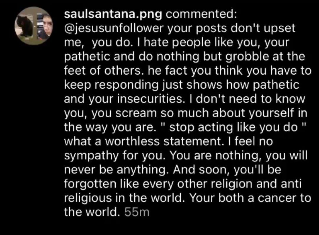 As someone who posts about being an atheist, I get a LOT of hate online.