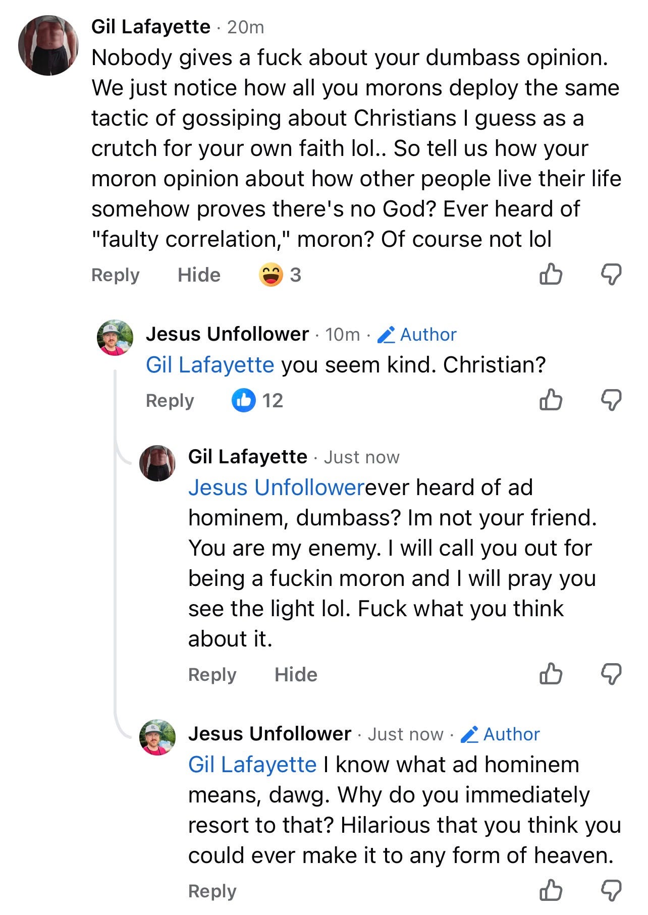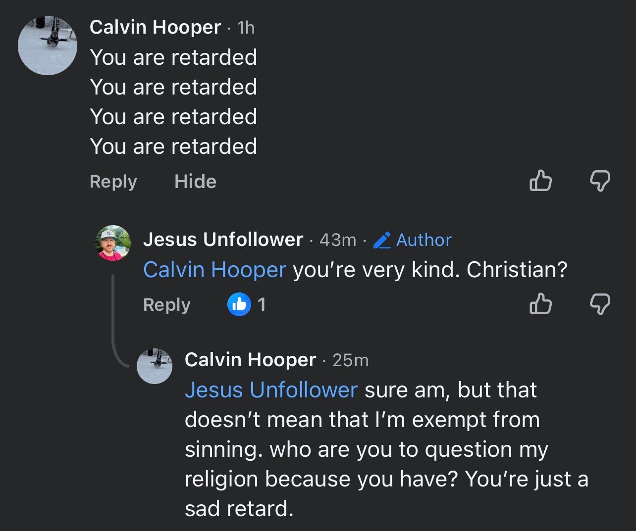 Who am I to question your religion? Oh, I don’t know, a person who knows how Christians are supposed to conduct themselves.