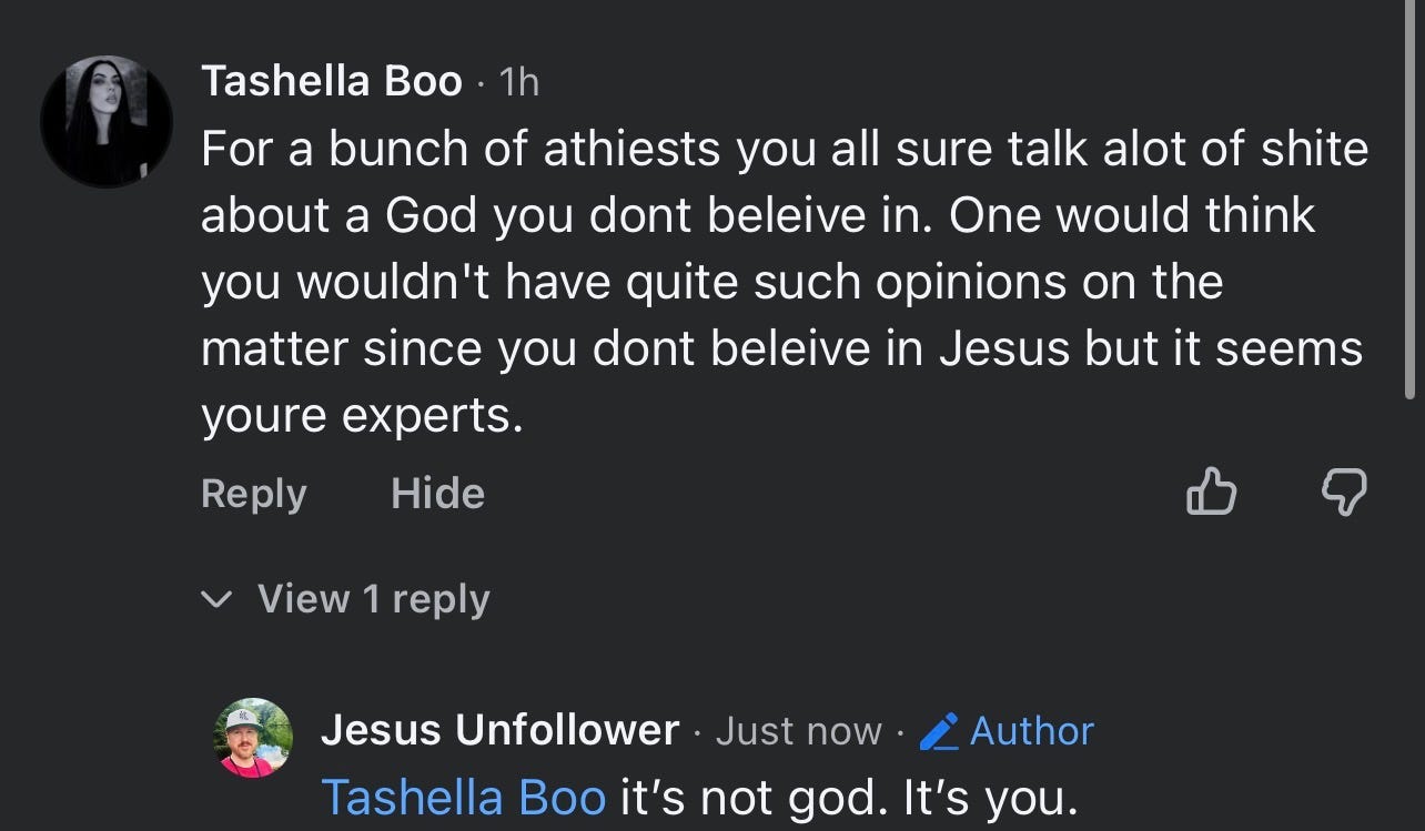 I speak of him hypothetically because you believe he’s real and tell me all of the ways that I’m disappointing him and what he’s going to do to me after I die, etc.