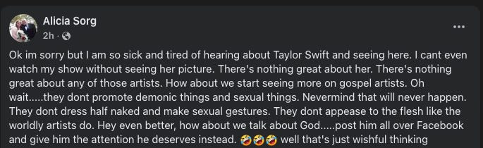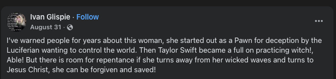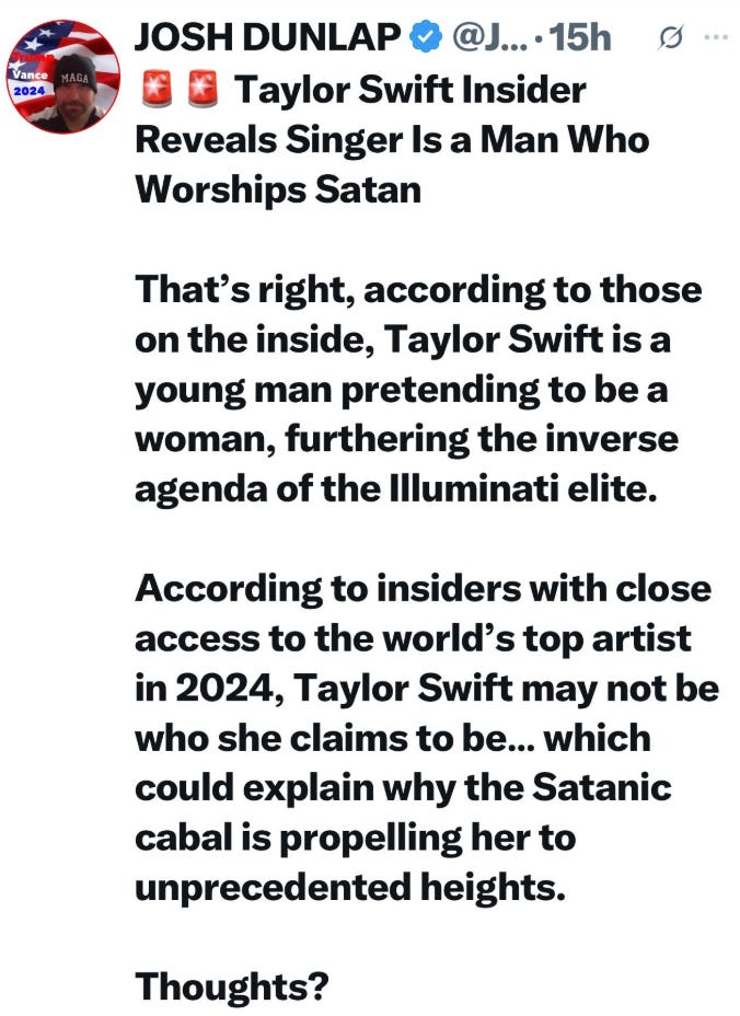 Taylor Swift is demonic trash, but Donald Trump is someone to be admired!
