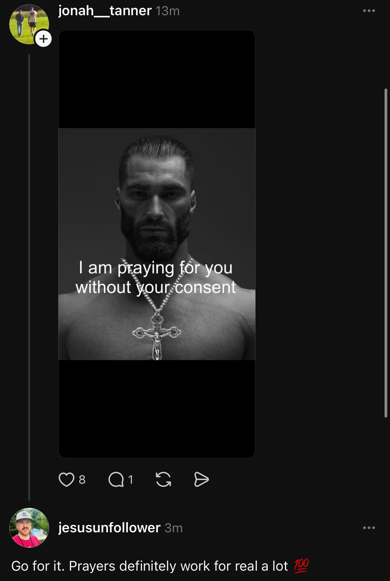 "Praying for you without your consent."
