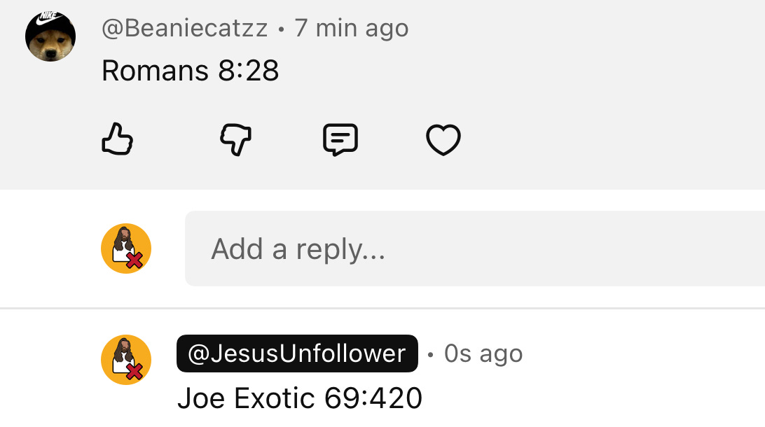 I’m not sure why they think a random Bible verse means anything to people who don’t think the Bible is the word of any gods.