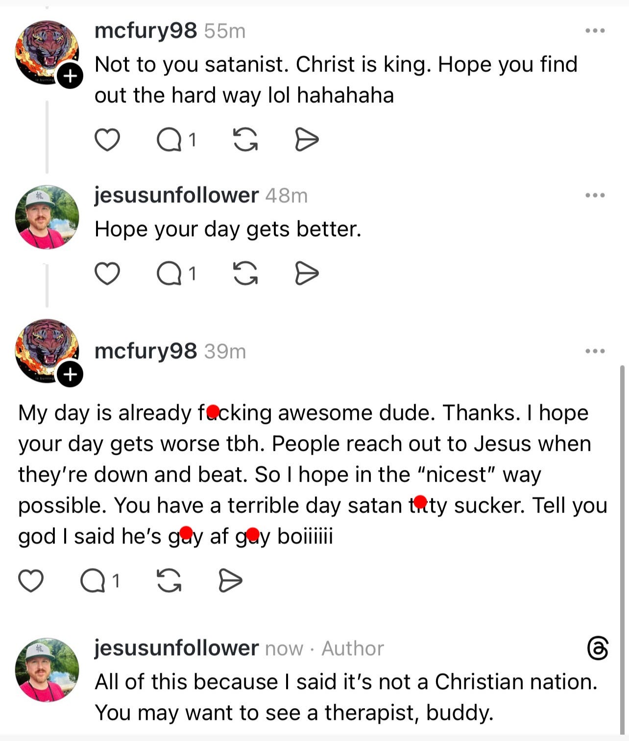 One of those unhappy Christians was mcfury98.