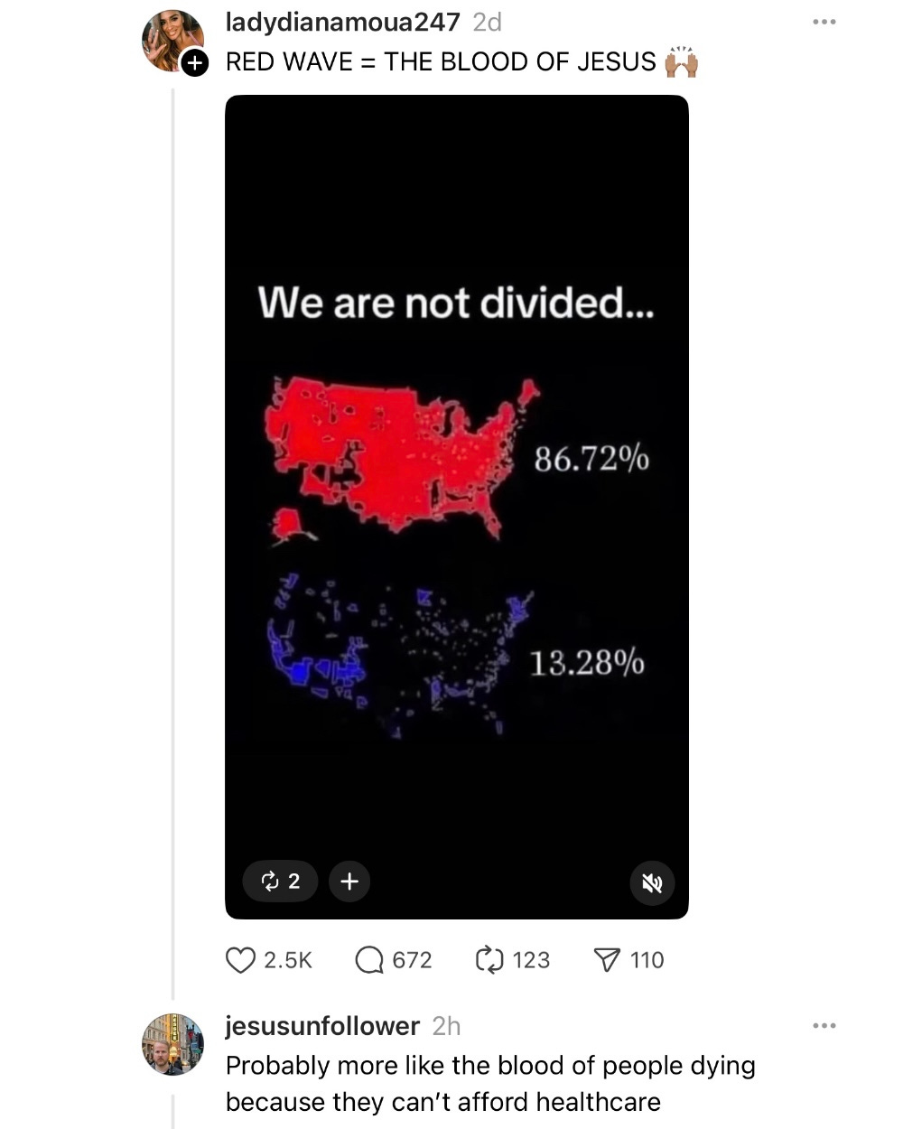 I saw this on Threads. I guess Jesus and Trump are synonymous now. Also, land doesn’t vote.
